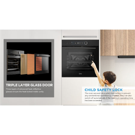 • მიდეას ჩასაშენებელ ელექტრო ღუმელი MO82107PBG-I  დამზადებულია უჟანგავი ფოლადისგან,